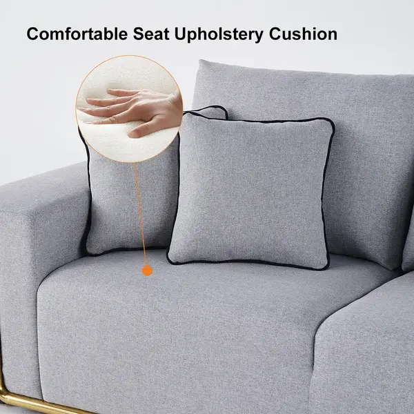 Modern Gray Cotton & Linen Upholstered 3-Seater Sofa
